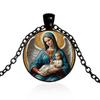 Virgin Mary Mother of Jesus Pendant Necklace, Christian Time Gem Pendant