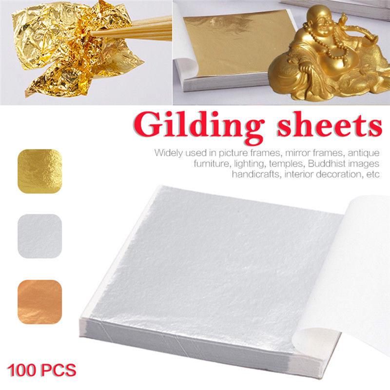 100PCS Imitation Gold Leaf Sheets Handmade DIY Scrapbooking Gold Foil Leaf for Craft Gilding, Painting, Nail Art