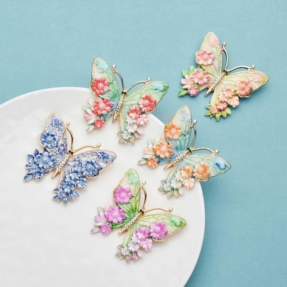 Enamel Big Flower Butterfly Brooches Rhinestone Enamel Lapel Pin Girl Jewelry