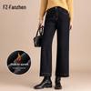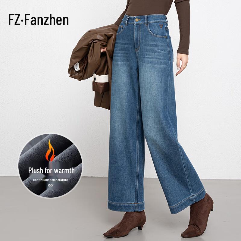Fanzhen Women's Fleece-Lined High-Waist Loose Wide-Leg Jeans