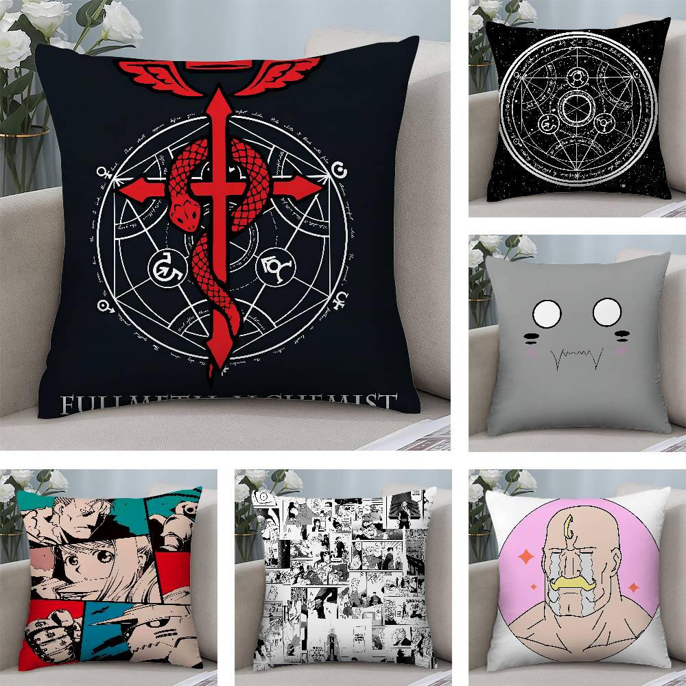 Anime F-Fullmetal Alchemist Pillow Case Short Plush Double-sided Print Square Throw Pillow Covers Sofa Home Cushion Decor