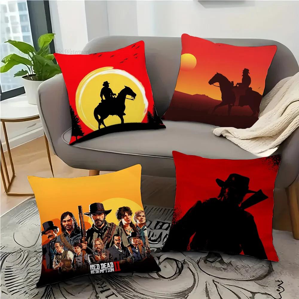 Games Red D-Dead R-Redemption 2 Pillow Case Square Pillow Bedroom Sofa Leisure Comfort Cushion Living Room Home Decoration 40X40