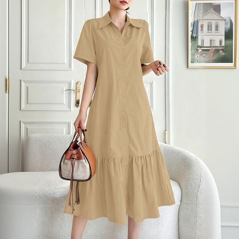 ZANZEA Women Casual Turn Down Collar Loose Summer Short Sleeve Dress