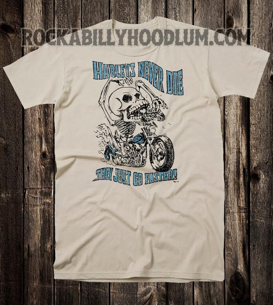 Retro Hot Rod Tee T Shirt Vtg Art Ed Big Daddy Roth Harley Never Die Skeleton