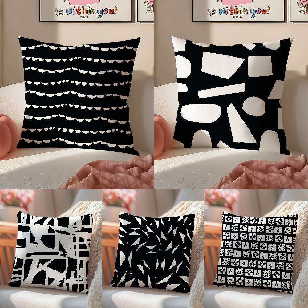Black And White Abstract Print Pillow Case Comfort Sofa Bed Silky Elegant Invisible Zipper Decorative Cushion Cover
