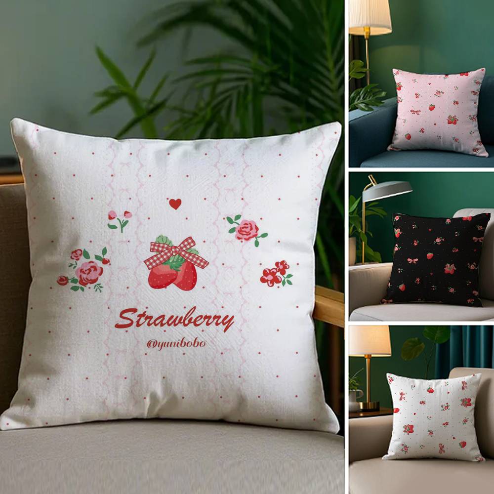 Elegant Strawberry Flowers Print Pillow Case Printed Brushed Fleece Pillow Baby Skin-Touch Eco-Friendly Dye-Sublimat