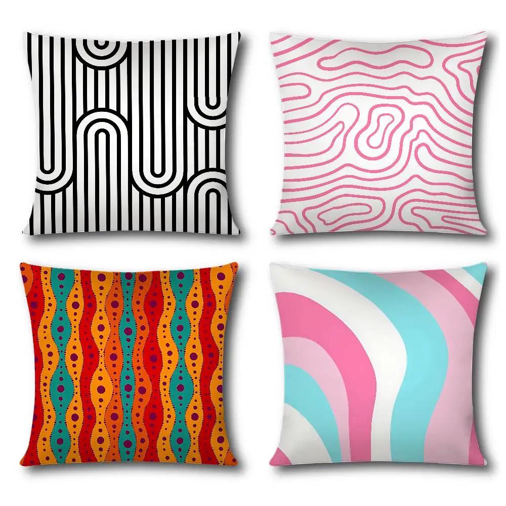 Striped Pattern Pillow Case Cushion Cover Soft Cute Throw Pillow Case For Car Sofa Pillowcase Polyester With Zipper