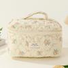 Women Quilted Makeup Bag Printed Cotton Aesthetic Toiletry Purse Large Capacity Zipper Closure Female Travel Bag