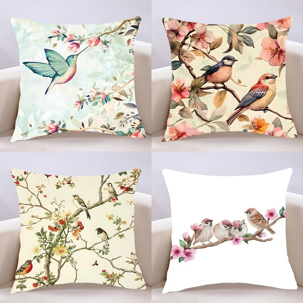 Flower And Bird Print Pillow Case Cushion Cover Soft Cute Throw Pillow Case For Car Sofa Pillowcase Polyester With Zipper