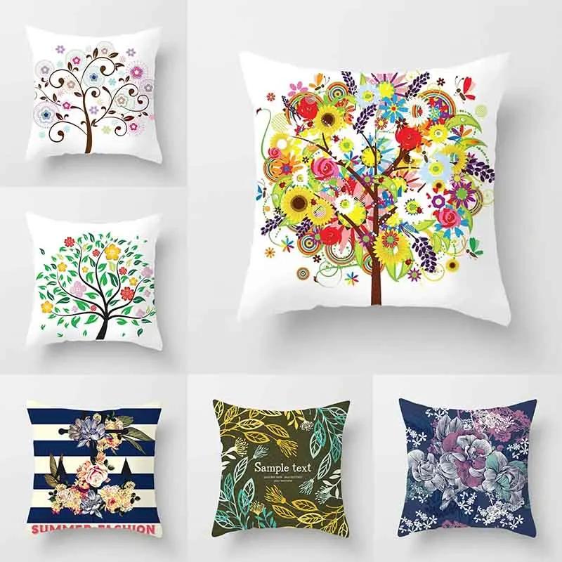 Luxury Home Decor Pillowcase Living Room Sofa Cushion Cover Creative Painting Colorful Tree Print Cushion Cover
