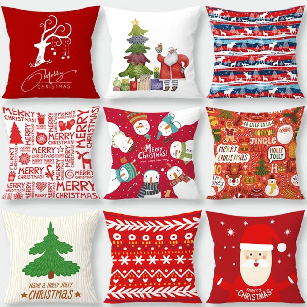 Christmas Printed Sofa Bedroom Living Room Pillow Seats Decorate Christmas Printed Printed Cushion Cover Decoración Navideña