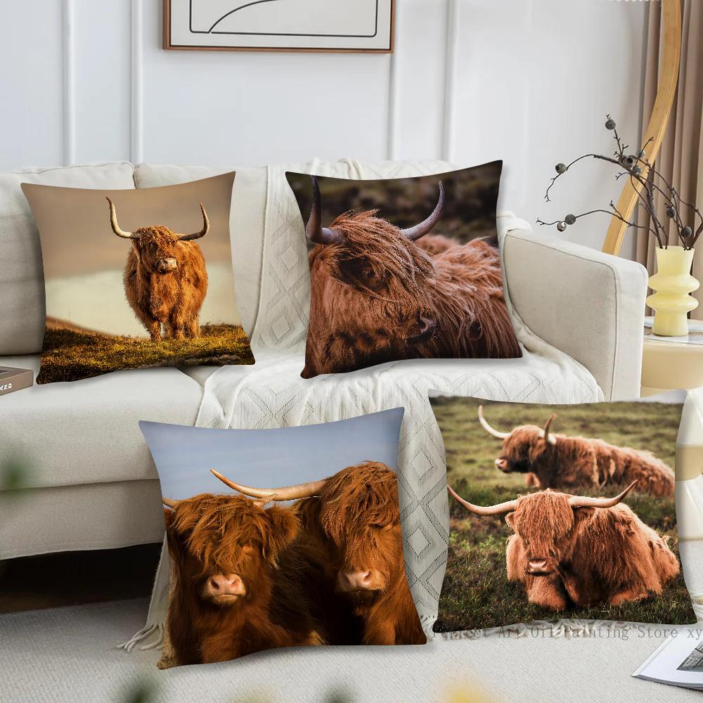 Scottish Highland Cattle Pillow Case Fashion Square Pillowcase Bedroom Sofa Room Ins Decoration Leisure Cushion Cover 40x40