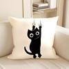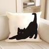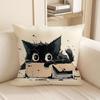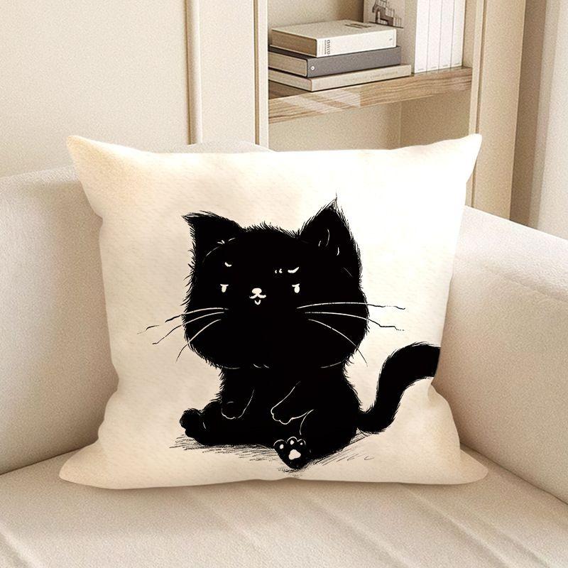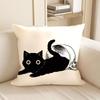 Cute Black Cat Cartoon Throw Pillow Cover - Minimalist Animal Home Decor
