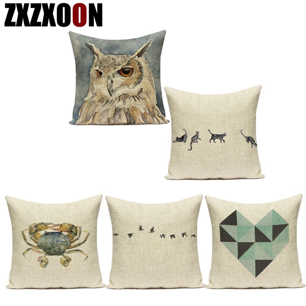 Flowers Plant Animals Whale Cats Horse Owl Decorative Pillows Polyester Cushion Cover for Sofa Home Living Room Almofadas