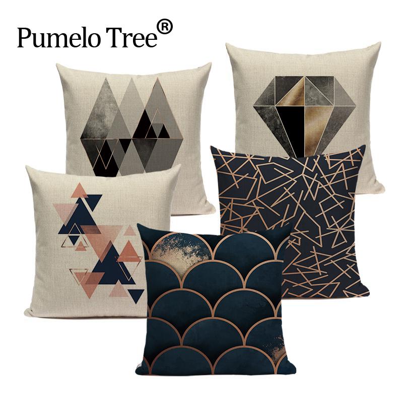 Geometric Black Blue Cushion Cover Stripe Textile Decor Throw Pillows Covers 45Cmx45Cm Square Sofa Bed Throw Pillow Cover
