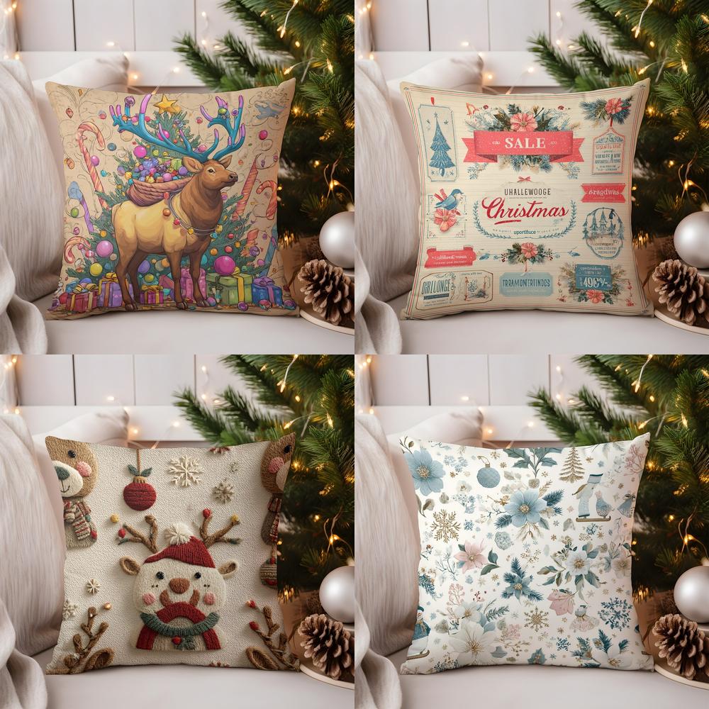 Home Decor Colorful Christmas Reindeer Decorative Pillow Cover Pattern Cushion Cover Suitable for Sofa Bedroom Car Pillow Cover