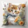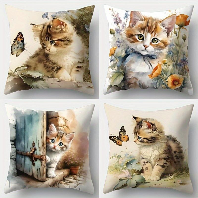 Home Decor Cute Kittens With Butterflies Floral Pillow Covers Pattern Cushion Cover Suitable For Sofa Bedroom Car Pillow Cover