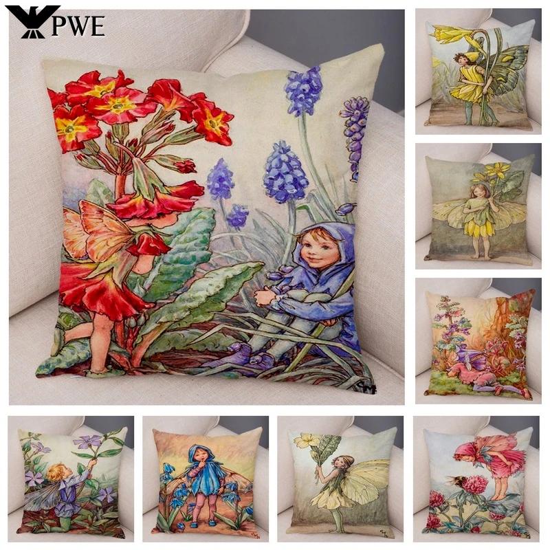 Lovely Color Cartoon Flower Girl Soft Cushion Set Fairy Tale World Elf Decoration Living Room Bedroom Sofa Home 45*45cm