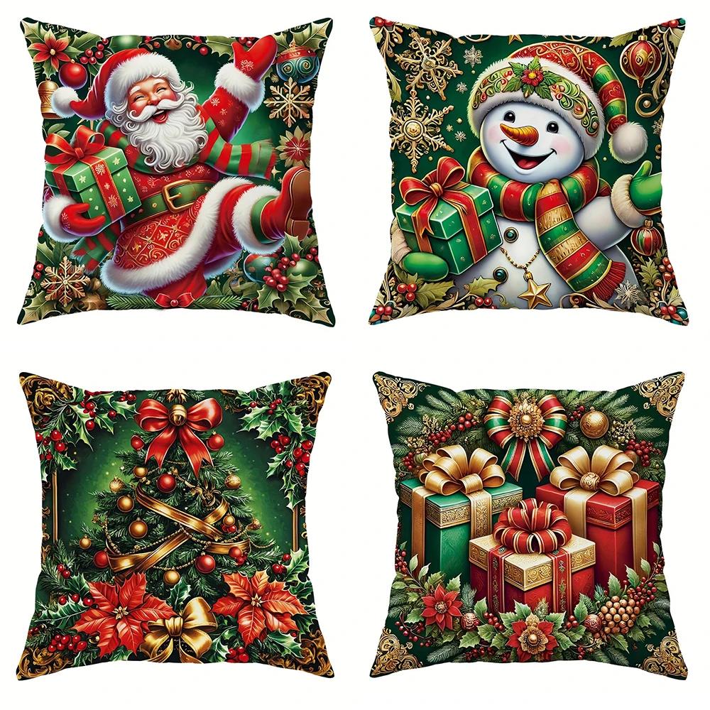 Christmas Decoration Pillowcase Merry Christmas New Year Gift Santa Claus Gift Box Snowman Pillow Cover Home Sofa Cushion Cover