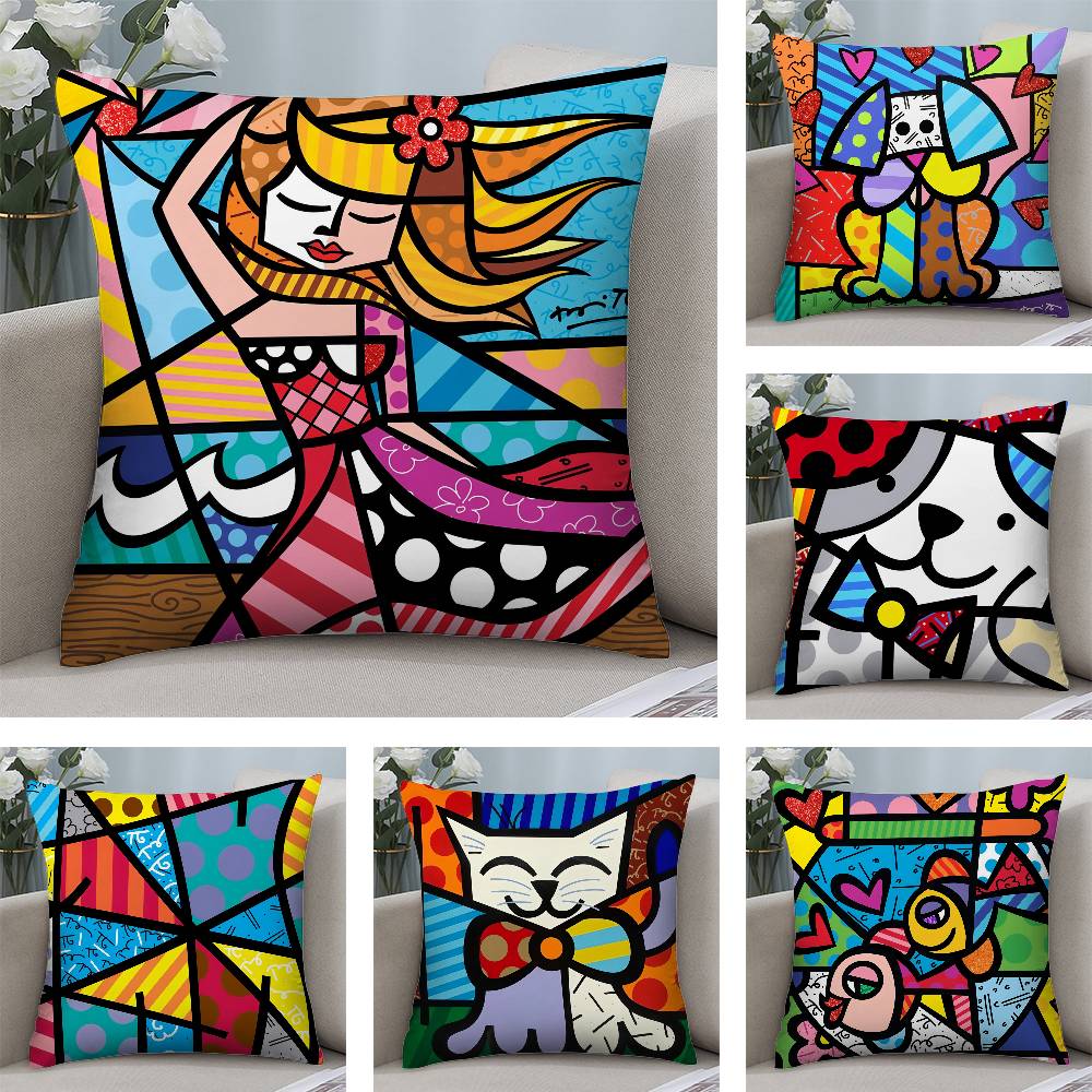 B-Britto Art Design Pillow Case Plush Fabric Soft Pillowcase Double Sided Print Cushion Cover Household Gifts