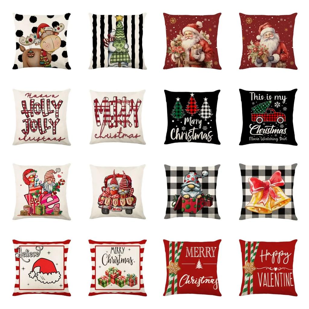 24 Year New Christmas Theme Home Linen Printed Pillow Cover, Holiday Car Pillow, Sofa Pillow, Cushion