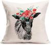 Linen Square Pillow Cover Watercolor Cute Farm Animal Sheep Wearing Leopard Print Hat Cushion Cover Farmhouse Decoration