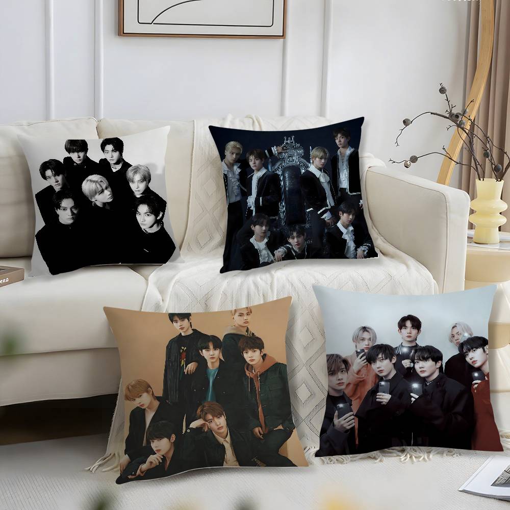 Kpop E-Enhypens Pillow Case Short Plush Print Cushion Cover Square Throw Pillow Covers Sofa Home Decor