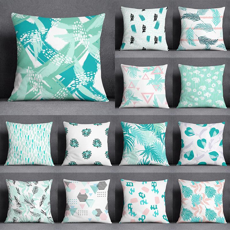 Abstract Summer Fresh Mint Feather Blue and Green Pattern Series Pillow Bedroom Sofa Car Seat Cushion Cover Pillowcase 45cm*45cm