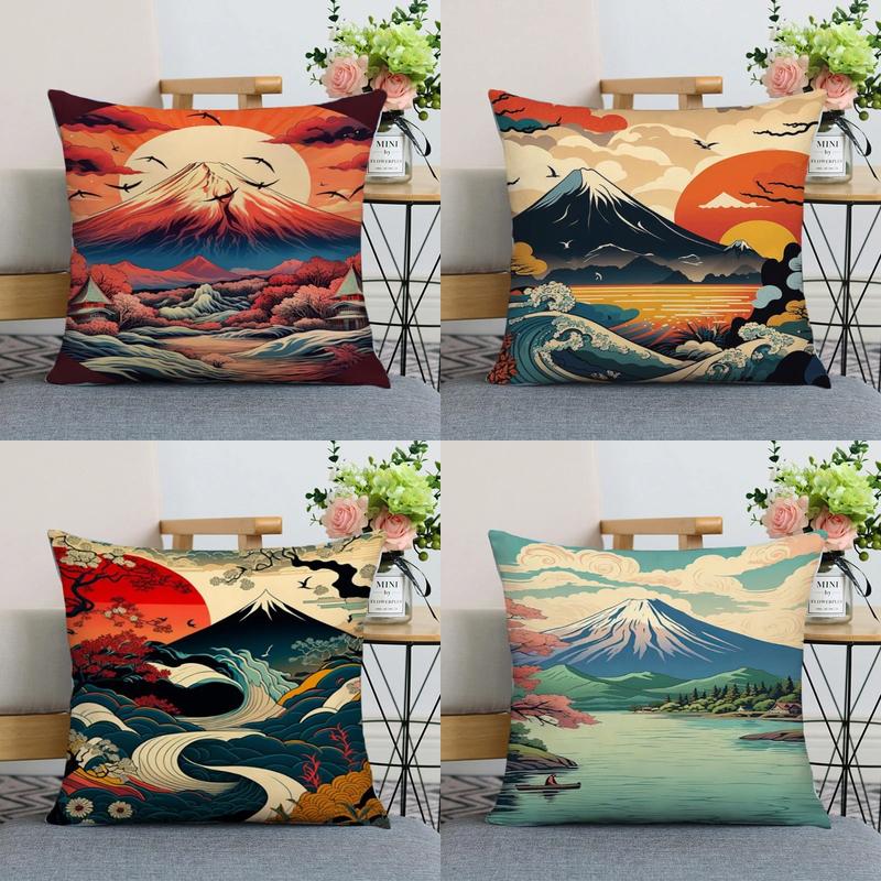 Home Decor Japanese Style Fujiyama And Wave Pillow Covers Pattern Cushion Cover Suitable For Sofa Bedroom Car Pillow Cover