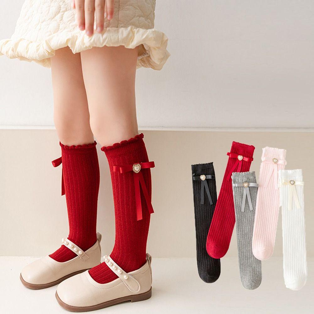 Cotton Children's Bow Stockings Princess Christmas Middle Tube Socks New Year Knee Socks Kids