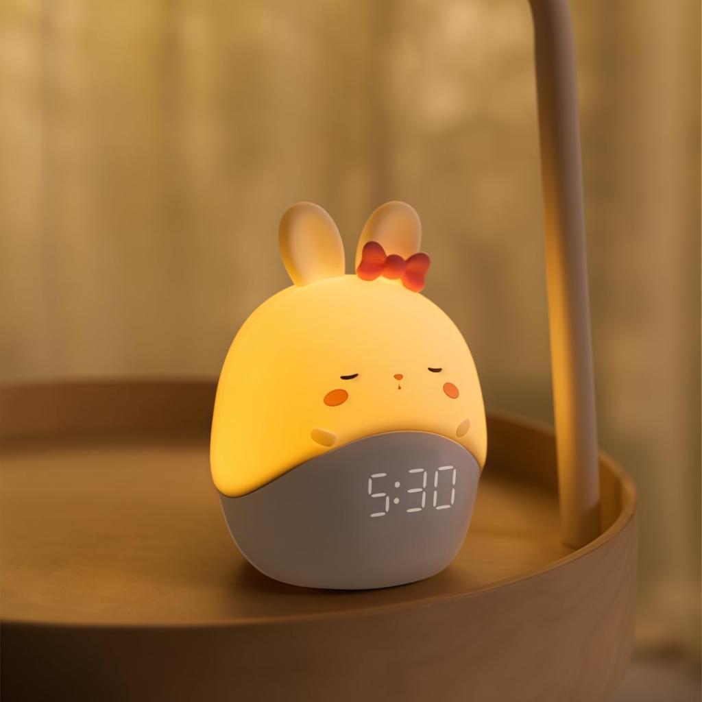 AUSTYLCO Night Light, Bedside Alarm Clock, Reading Light, Nursing Light, Warm White, Rechargeable, Multicolor, Cute Rabbit Design, Perfect for Kids'