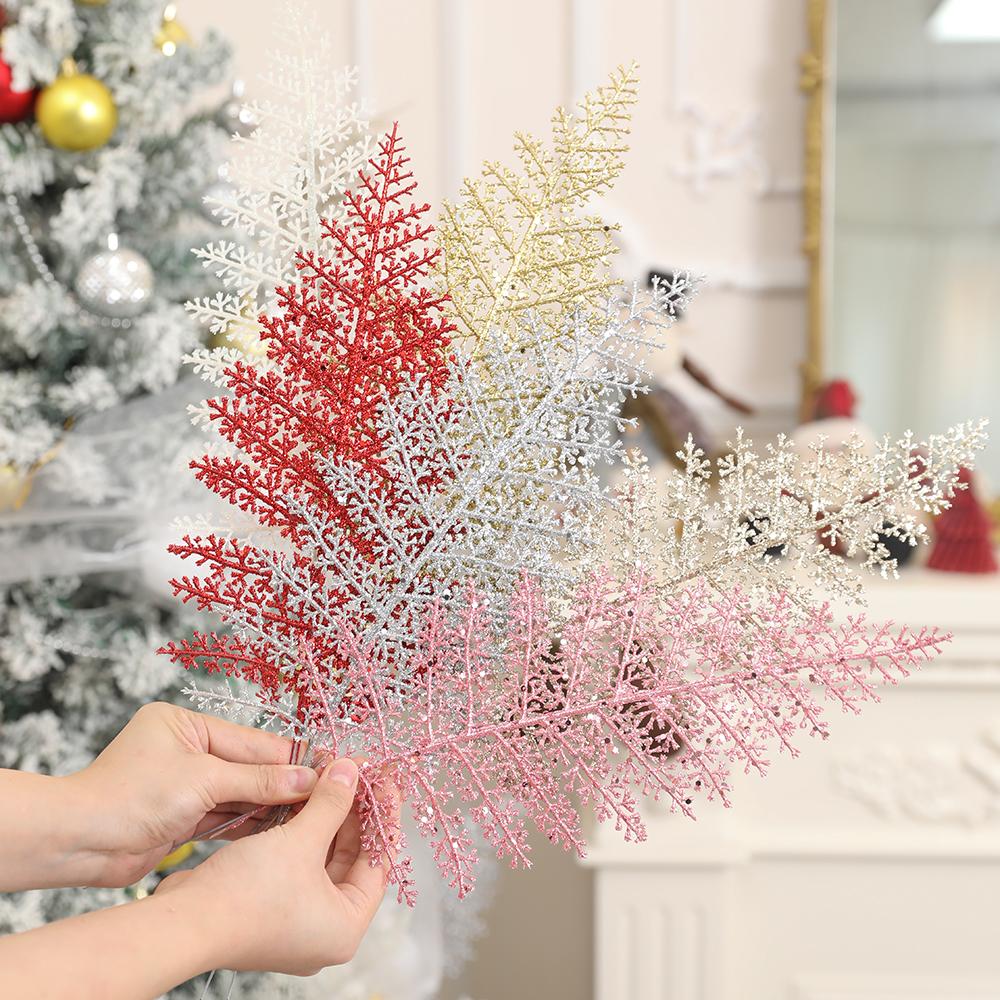 4Pcs Artificial Leaves Bouquet Fake Plant Christmas Tree Decoration for Xmas Garland Ornament Home Decor 2026 Gift Accessories