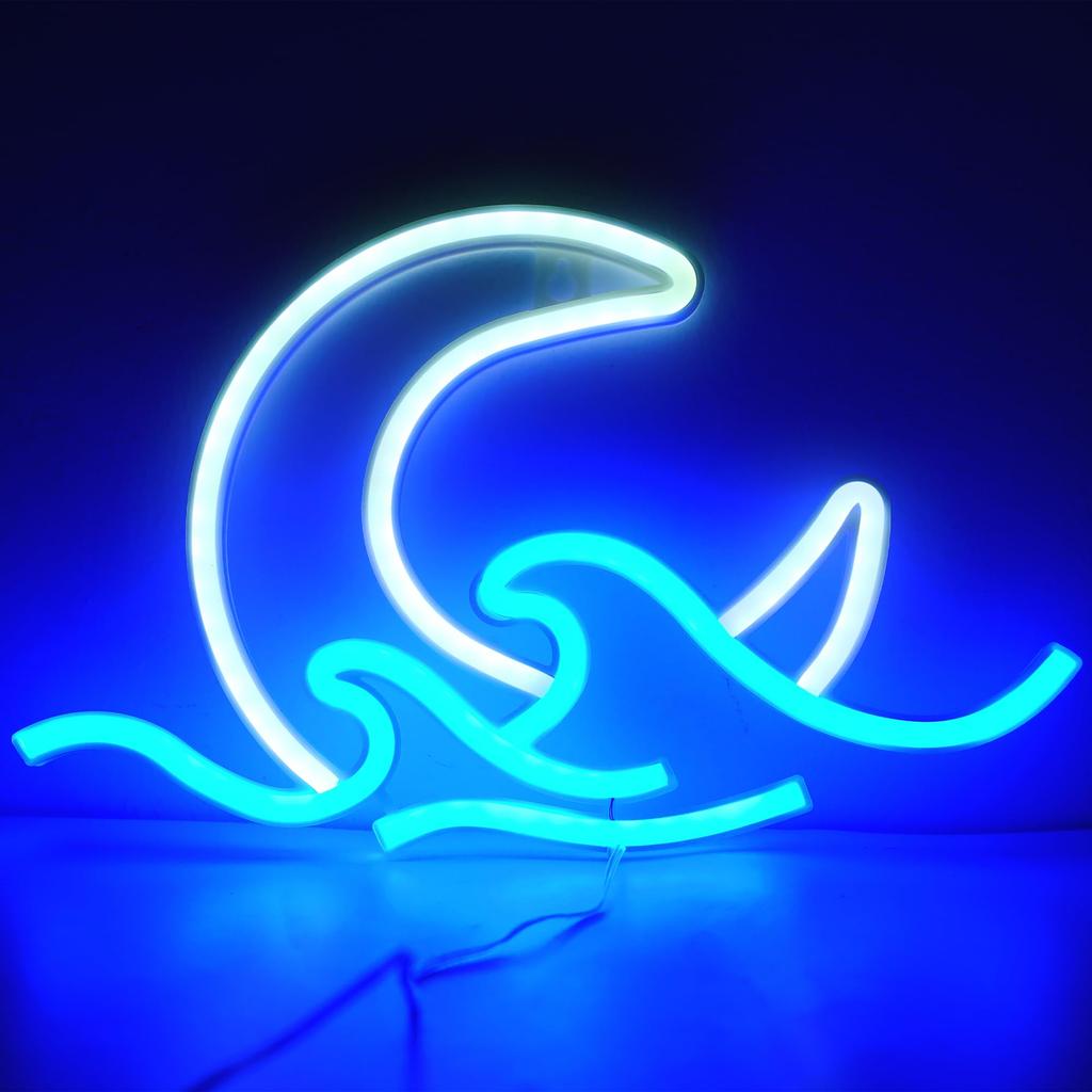 ENUOLI Neon Sign, Neon Light, Room Light, Moon, Wave, Wall Hanging, Interior Decor, Wall Decoration, Birthday Gift, Shop, Bar, Home, Coffee Shop,