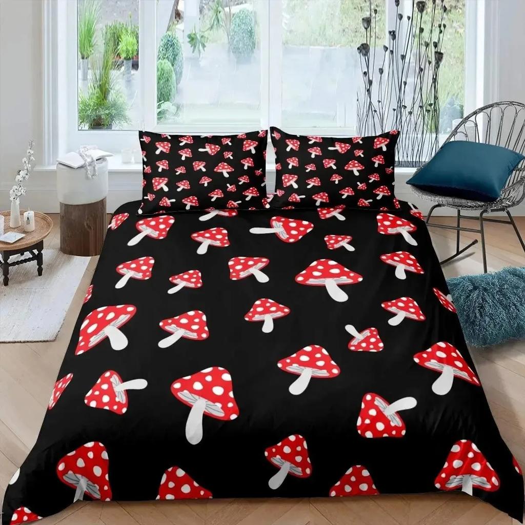 Wild Mushroom Duvet Cover Set Burgundy Plant Bedding Set Comforter Soft Polyester King Queen Size With Pillowcase