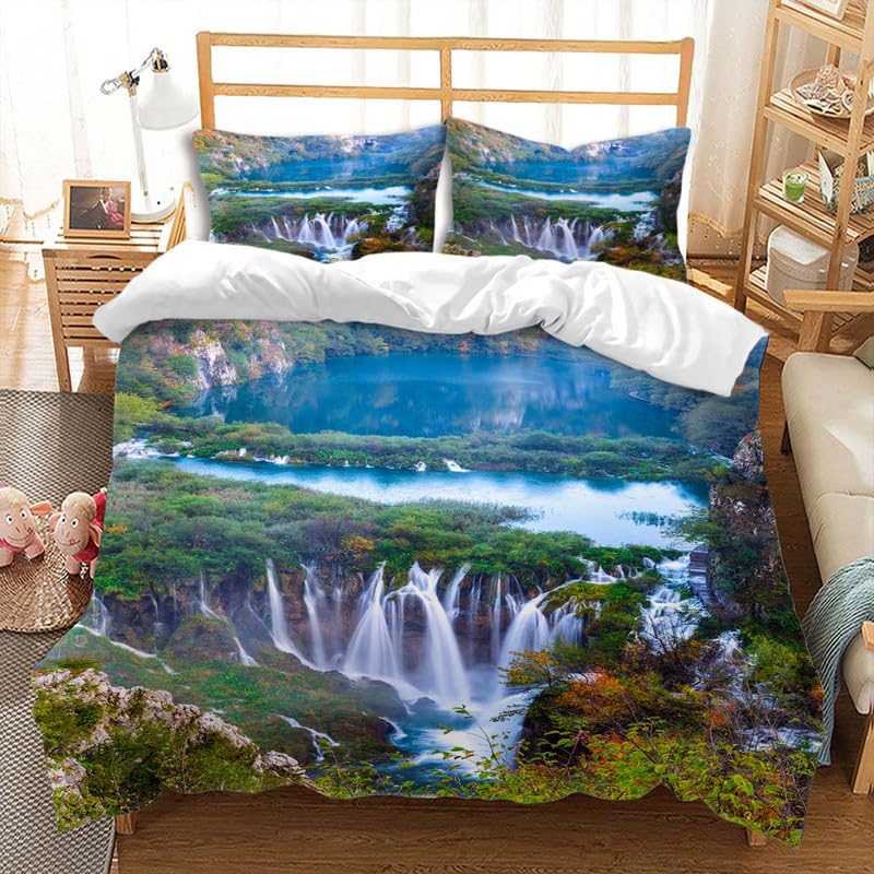 Waterfall Duvet Cover Sets For Teens Adults Queen Quilt Covers Lightweight Down Room Decor 2 Pillowcases 1 Duvet Cover No Quilt