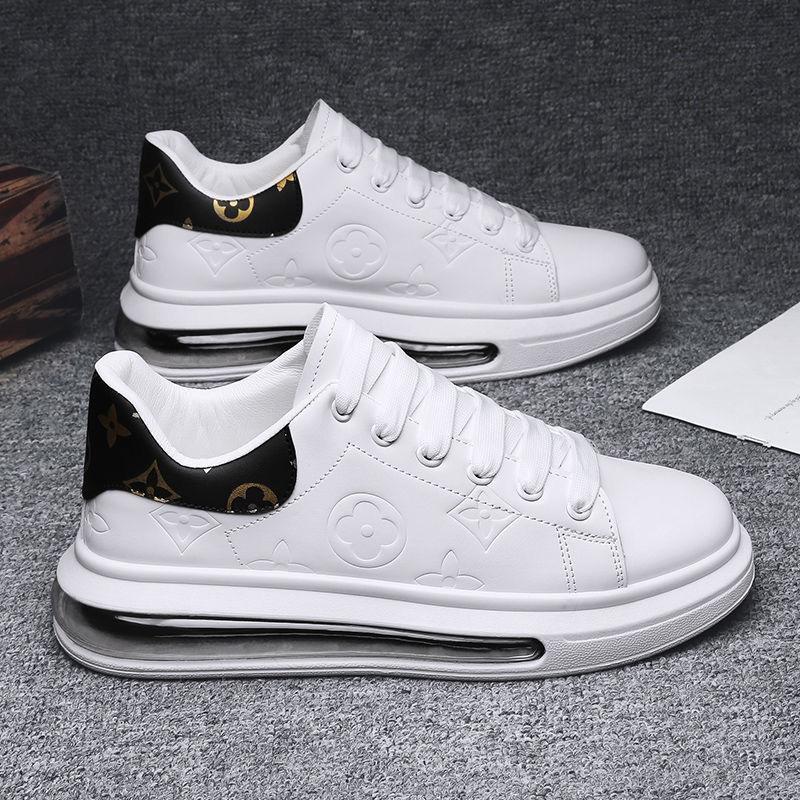 Trendy Printed White Sneakers for Men and Women, Couple's Air-Cushion Shoes, Versatile Thick-Soled Height-Increasing Casual Shoe