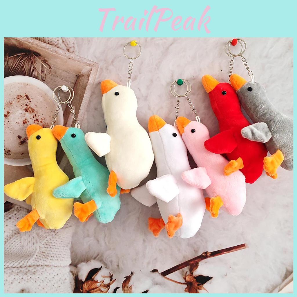 This plush goose keychain features a soft, high-quality PP cotton filling, providing a gentle tactile experience, it offers a lightweight and durable design suitable for daily attachment to bags or keys. Crafted from plush fabric in various colors, it resists wear and maintains its shape over time. Ideal for kids and collectors, this keychain adds a charming touch to personal accessories. Easy to care for, simply wipe clean with a damp cloth to preserve its appearance.