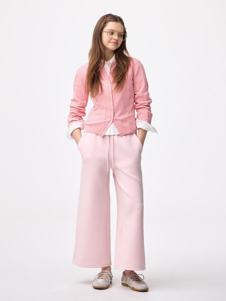 The GU by Uniqlo Puff Sweat Baggy Pants provide a graceful silhouette and excellent elasticity. The material used has a fullness and resilience, offering a comfortable fit. Features include a non-adjustable front elastic waistband with an external drawstring and two side pockets.