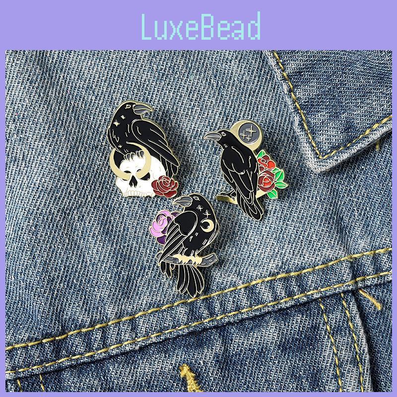 Geometric Black Bird Brooch Elegant Rose Flower Crow Enamel Pin For Fashion Lovers