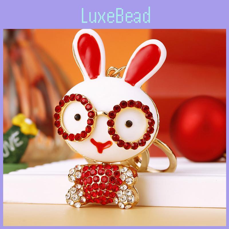 Adorable Pink Rabbit Glasses Keychain Sparkling Metal Keyring Perfect Gift For All Occasions