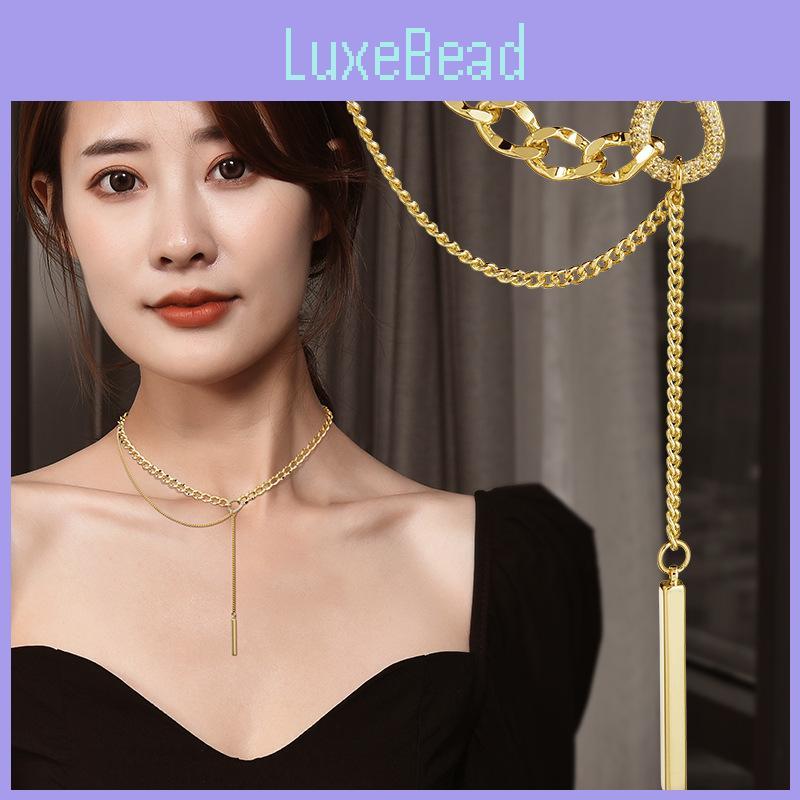 Stylish Geometric Titanium Steel Layered Chain Necklace For Women With Elegant Tassels