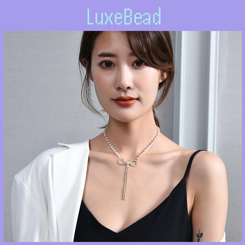 The round bead chain adds a classic touch to the overall design, while the unique crystal drop pendant enhances its visual appeal. With a purity of K5 and the added visual interest of patterned elements like checks and butterflies, this necklace captures the essence of contemporary fashion trends. Embrace the beauty of the Black and Pearl White Bowknot Necklace and let it become a treasured part of your accessory collection.
