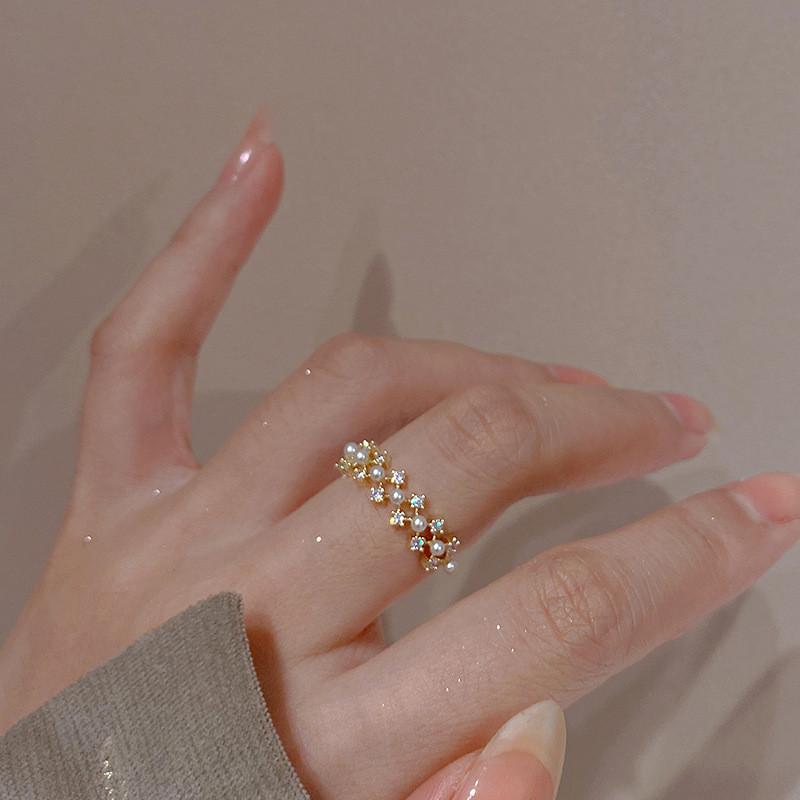 Elegant Adjustable Open Ring With Colorful Zirconia Lace And Pearl For Women