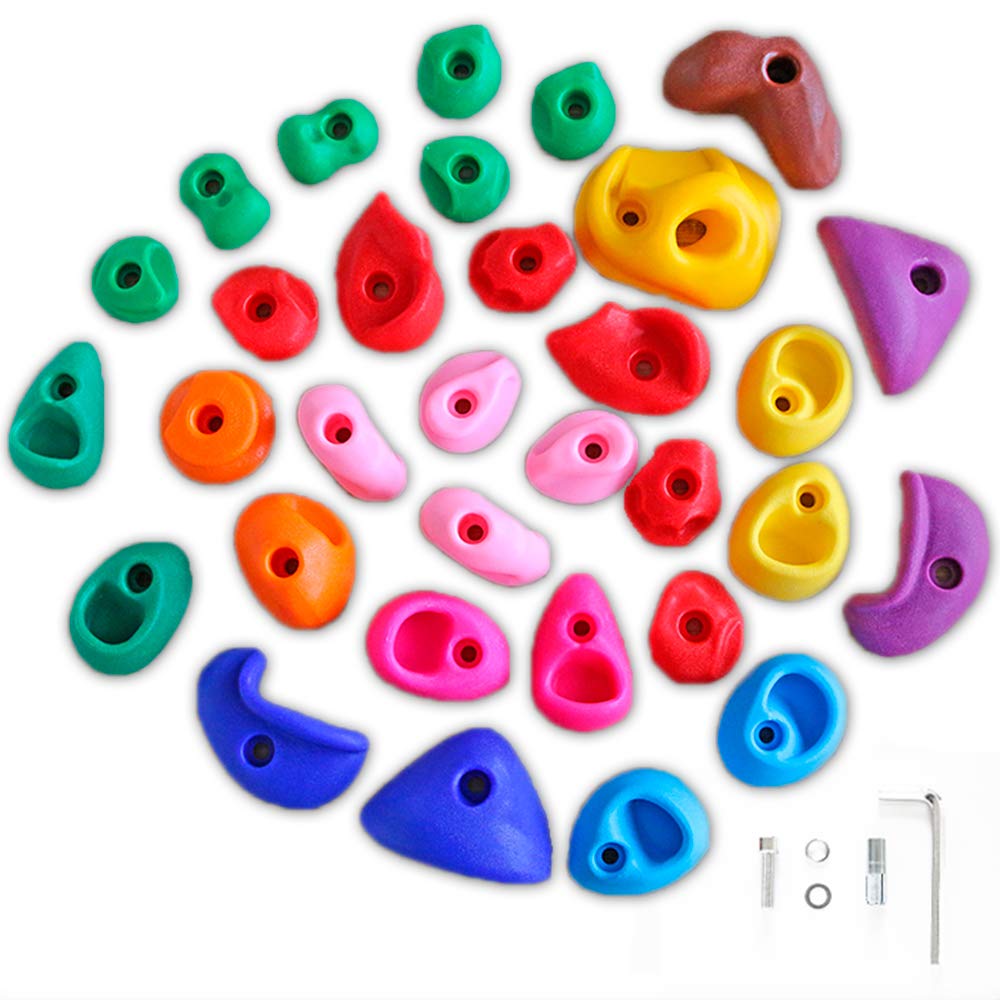 Climbing Hold Set Concrete Wall Bouldering Holds for Kids and Climbing Rock Climbing 32 Plastic Mixed Hardware Included (with Hardware) - Children,