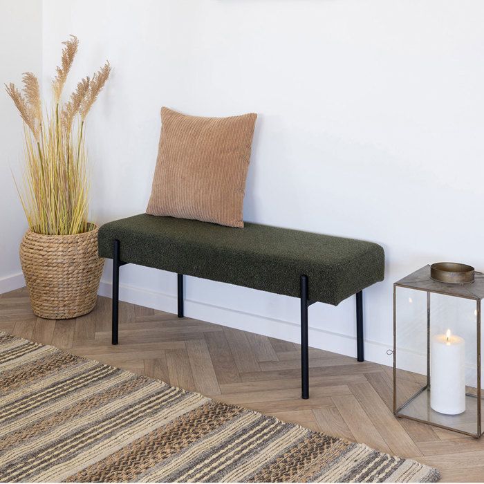 Bench 100x36x42.5 Cm In Dark Green Bouclé Fabric and Black Legs
