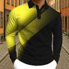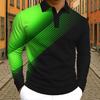 Men's 2025 Long Sleeve Polo Shirt,Polyester Slim Fit, Gradient Geometic Printed Casual Tops, Spring Autumn Quick Dry Performance