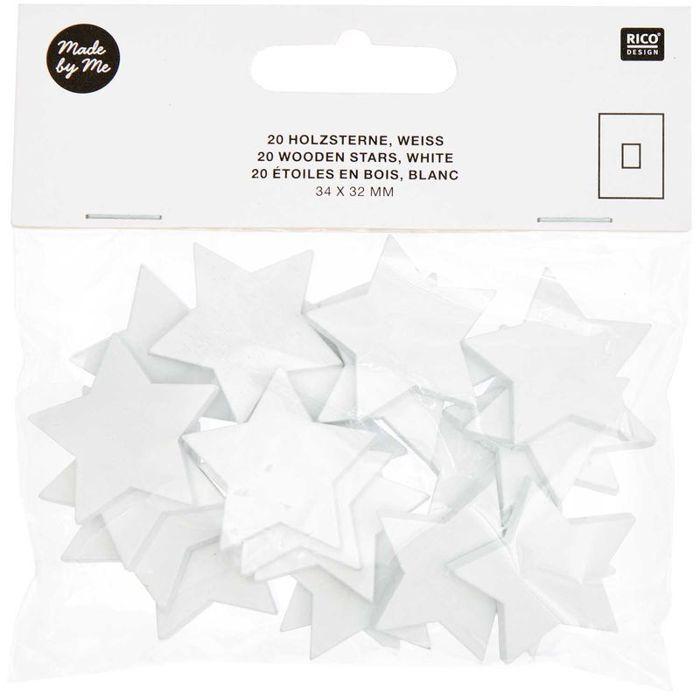 Étoiles en bois - RICO DESIGN - 30 mm - Blanc - 20 pièces - Décoration créative