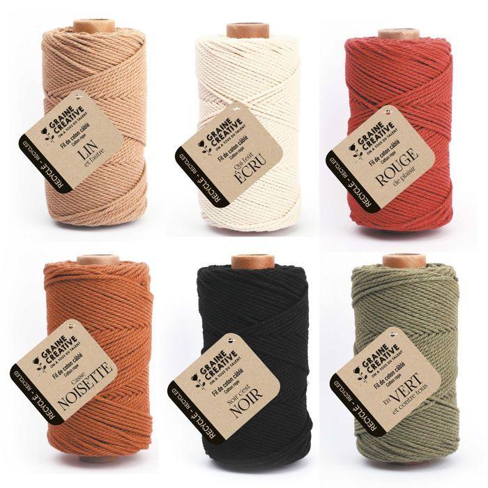 Bobines de coton cablé recyclé - GRAINE CREATIVE - Multicolore - 100 m - Ø 2 mm - 400 g