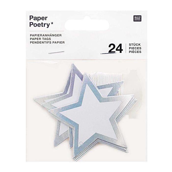 Étiquettes à suspendre - RICO DESIGN - Étoiles argentées - 24 pièces - Décoration de fête - Intérieur
