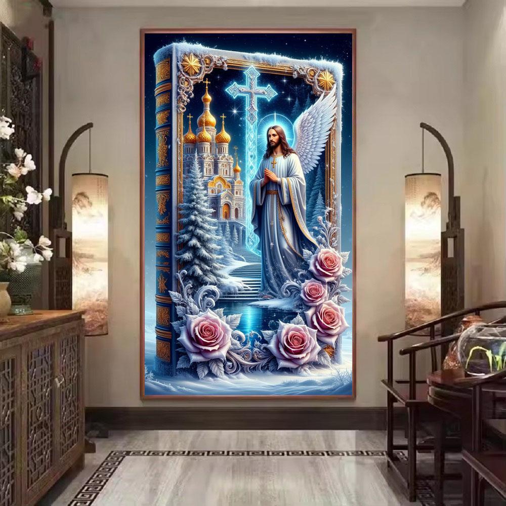 Large Size Mosaic DIY Full Diamond Painting Kits Art The Cross of Jesus and Flowers Embroidery Cross Stitch Rhinestones